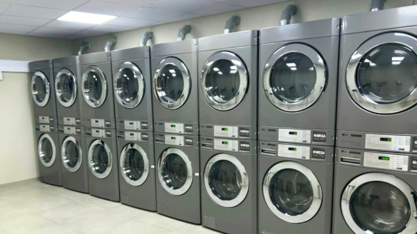MEGA Laundry supplied and installed LG Commercial stacked washer and dryer units, perfectly suited for shared laundry environments. These compact machines are engineered for energy and water efficiency, featuring a front-loading washer with a tilted drum angle and high-speed extraction. This advanced design removes more water during the spin cycle, resulting in shorter drying times and improved overall operational efficiency.
